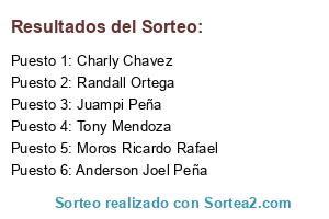 Lista de participantes: Randall Ortega, Charly Chavez, Moros Ricardo Rafael, Juampi Peña, Anderson Joel Peña, Tony Mendoza.