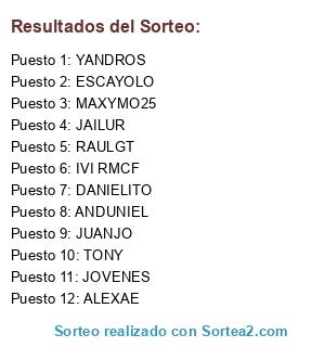 Lista de participantes: JOVENES, ALEXAE, MAXYMO25, YANDROS, DANIELITO, JUANJO, ANDUNIEL, ESCAYOLO, TONY, IVI RMCF, JAILUR, RAULGT.