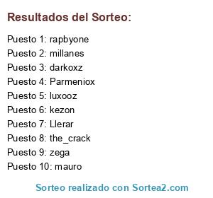 Lista de participantes: Llerar, rapbyone, kezon, zega, Parmeniox, the_crack, darkoxz, millanes, luxooz, mauro.