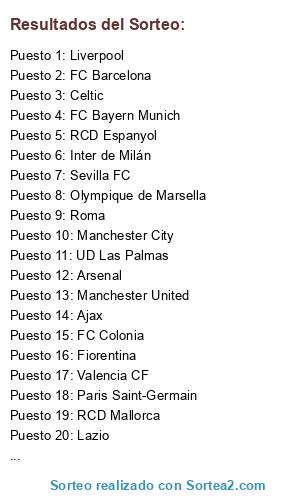 Lista de participantes: Manchester United, Borussia Dortmund, Real Madrid, Inter de Milán, FC Colonia, Ajax, Atlanta United FC, FC Barcelona, Roma, Lazio, Real Zaragoza, Milan, FC Bayern Munich, Celtic, RCD Espanyol, RCD Mallorca, Atlético Madrid, Real Betis, Arsenal, UD Las Palmas, Paris Saint-Germain, Manchester City, Fiorentina, Rayo Vallecano, Sevilla FC, Olympique de Marsella, Sampdoria, Valencia CF, Liverpool, Chelsea.