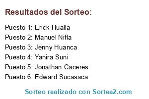 Lista de participantes: Erick Hualla, Edward Sucasaca, Jenny Huanca, Jonathan Caceres, Manuel Nifla, Yanira Suni.
