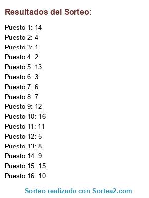 Resultados del sorteo: