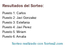 Lista de participantes: Miriam, Carlos, Javi Gonzalez, Estefania, Javi Perez, Amalia.