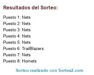 Lista de participantes: Hornets(37), Jazz(32), Knicks(31), Mavericks(30), Nets(332), Pacers(19), Spurs(41), TrailBlazers(28).