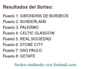 Lista de participantes: GIRONDINS DE BURDEOS, REAL SOCIEDAD, PALERMO, SAO PAULO, SUNDERLAND, STOKE CITY, GETAFE, CELTIC GLASGOW.