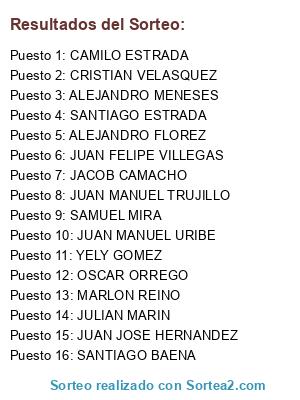 - Puesto 6: JUAN FELIPE VILLEGAS