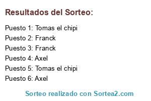 Lista de participantes: Axel, Franck, Axel, Tomas el chipi, Franck, Tomas el chipi.
