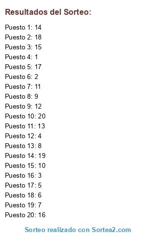 Resultados del sorteo: