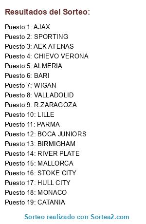 Lista de participantes: DEPORTIVO, B.DORTMUND, MAN.UNITED, CELTIC, JUVENTUS, MALAGA, ATLETI, WOLFSBURGO, HUESCA, BOCA JUNIORS, SHALKE 04, ELCHE, FIORENTINA, PSG, LEVANTE.