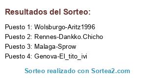 Lista de participantes: Rennes-Dankko.Chicho, Genova-El_tito_ivi, Malaga-Sprow, Wolsburgo-Aritz1996.