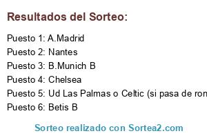 Lista de participantes: Chelsea, Ud Las Palmas o Celtic (si pasa de ronda el celtic), Betis B, B.Munich B, Nantes, A.Madrid.