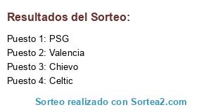 Lista de participantes: PSG, Celtic, Chievo, Valencia.