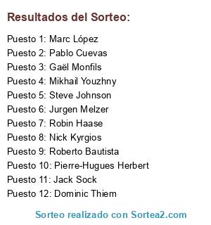 Lista de participantes: Robin Haase, Jurgen Melzer, Nick Kyrgios, Gaël Monfils, Jack Sock, Pierre-Hugues Herbert, Dominic Thiem, Marc López, Roberto Bautista, Mikhail Youzhny, Pablo Cuevas, Steve Johnson.