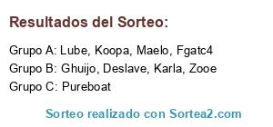 Lista de participantes: Koopa, Zooe, Ghuijo, Fgatc4, Deslave, Karla, Pureboat, Lube, Maelo.