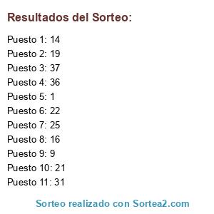 Resultados del sorteo: