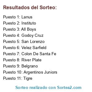Resultados del sorteo: