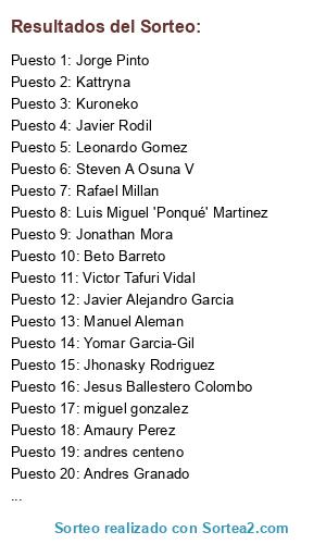Participaciones múltiples: En este sorteo se registraron participaciones múltiples (Una misma persona con más de una opción de ganar el premio). No obstante, cada participante sólo podía ganar un premio como máximo.