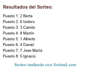 Lista de participantes: 1 Alberto, 2 Berta, 3 Camilo, 4 Daniel, 5 Ignacio, 6 Isidoro, 7 Jose María, 8 Martín.