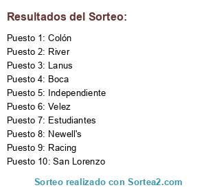 Resultados del sorteo: