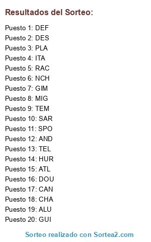 Resultados del sorteo: