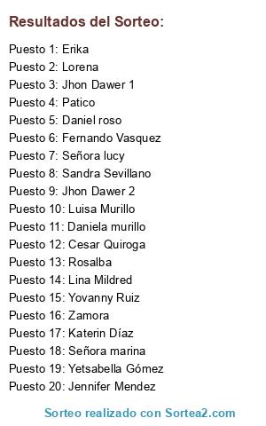 Lista de participantes: Fernando Vasquez, Jhon Dawer 1, Señora lucy, Yovanny Ruiz, Jennifer Mendez, Señora marina, Zamora, Katerin Díaz, Jhon Dawer 2, Yetsabella Gómez, Lorena, Luisa Murillo, Erika, Patico, Rosalba, Daniel roso, Cesar Quiroga, Lina Mildred, Sandra Sevillano, Daniela murillo.