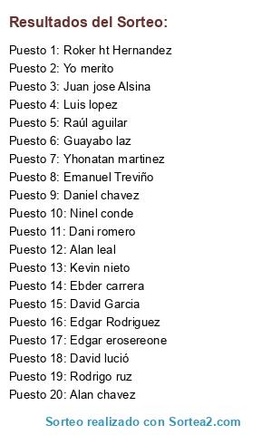 Lista de participantes: Luis lopez, Emanuel Treviño, Juan jose Alsina, Kevin nieto, Alan leal, Dani romero, Rodrigo ruz, Daniel chavez, Guayabo laz, Edgar erosereone, Roker ht Hernandez, Alan chavez, Yo merito, Ebder carrera, Ninel conde, Yhonatan martinez, Raúl aguilar, David lució, Edgar Rodriguez, David Garcia.