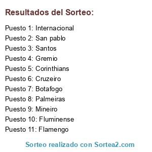Lista de participantes: Santos, Mineiro, Cruzeiro, Palmeiras, San pablo, Corinthians, Flamengo, Gremio, Botafogo, Internacional, Fluminense.