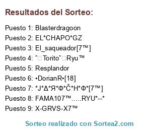 Lista de participantes: *Ј*Δ*Я*Ф*Č*Η*Ф*[7™], Resplandor, Blasterdragoon, EL*CHAPO*GZ, El_saqueador[7™], X-GRVS-X7™, FAMA107™.....RYU*--*, •DorianR•[18], ˆ☆Toritoˆ☆Ryu™.