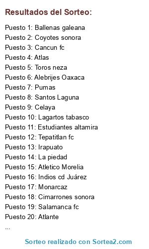 Resultados del sorteo: