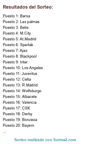 Lista de participantes: Borussia, Inter, PSG, Ajax, R.Madrid, Los angeles, Marsella, Napoles, Betis, Celta, Bayern, CSK, Las palmas, Tenerife, Spartak, Liverpool, Metz, Leicester, Valencia, At.Madrid, Blackpool, Barcelona, Watford, Athletic, Pohang, Fulham, Albacete, Zaragoza, Brujas, Wolfsburgo.