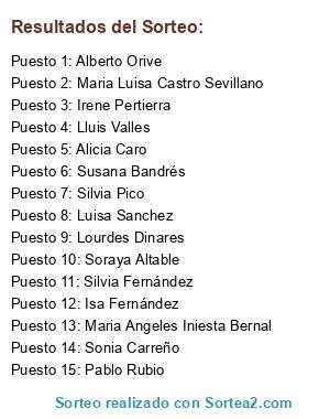 Lista de participantes: Sonia Carreño, Irene Pertierra (3), Soraya Altable (2), Alberto Orive (4), Lourdes Dinares (2), Susana Bandrés, Luisa Sanchez, Maria Luisa Castro Sevillano (2), Silvia Pico, Lluis Valles, Maria Angeles Iniesta Bernal, Pablo Rubio, Silvia Fernández, Alicia Caro, Isa Fernández.