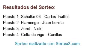 Lista de participantes: Celta de vigo - Canillas, Flamengo - Juan bonilla, Zenit - Nick, Schalke 04 - Carlos Twitter.