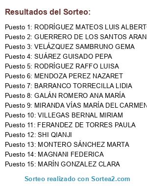 - Puesto 8: GALÁN ROMERO ANA MARÍA