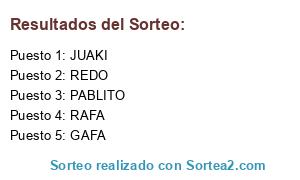 Lista de participantes: JUAKI, REDO, GAFA, PABLITO, RAFA.