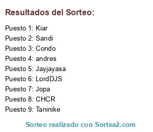 Lista de participantes: Jopa, CHCR, Taninike, LordDJS, Condo, andres, Sandi, Kiar, Jayjayasa.