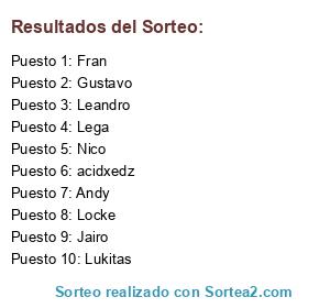 Lista de participantes: Lukitas, Jairo, Lega, Leandro, Gustavo, Locke, Nico, Andy, Fran, acidxedz.
