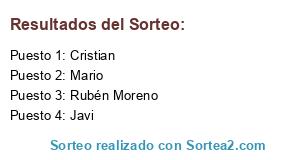 Lista de participantes: Manu, Javi, Pablo, Alex, Mario, Joserra, Cristian, Tristán, Rubén Moreno, Silos.