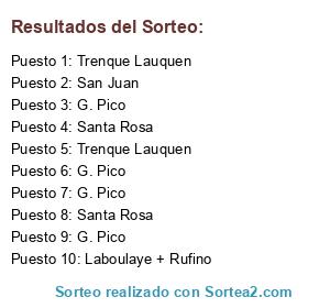 Lista de participantes: Santa Rosa, Santa Rosa, Santa Rosa, Trenque Lauquen, Trenque Lauquen, Trenque Lauquen, Trenque Lauquen, Tunuyán, Laboulaye + Rufino, Laboulaye + Rufino, Laboulaye + Rufino, Pilar, Pilar, San Juan, G. Pico, G. Pico, G. Pico, G. Pico, G. Pico, G. Villegas, G. Villegas.