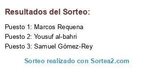 Lista de participantes: Luis Blanco, Antonio Blanco, Bachir ould errachid , Jacob Saad, David Martín , Alberto Sacramento, Manuel Contreras, Jesus Contreras , José María Valenzuela, Jorge Pérez, Daniel de Dios, Joaquín Fernández , Juan Pablo Olivas, Juan Antonio Muñoz, Luisa Orozco, Juan Serrano, Edgar Velásquez , Daniel Viana, Hernán Palumbo, Sergio Relaño, Javier Molina , Pedro Maideu, Gerardo de las heras, Adriano mendes, José María Martín , Rosa Sola, José Mari, Antonio Gómez , Alejandro Hernando, Miguel montilla, Gregorio Sánchez , María Dolores castillo, Laura Tirado, Pedro Benítez , Miguel Ángel Simo Herrero, Alfonso Martínez , Elena Guerrero, Eva piñeiro , Merce Monferrer , Josep cruells , Iván Rodríguez , Samuel Gómez-Rey, Esther Feito, Carlos Muñoz, Juan Carlos Díaz , José María Gomez, Eduardo Filgueira , Amelia Carranza, Elisabet Hernández , Emma Martínez , Adrian Llanera, Francisco Javier moreno, Jonathan Perez , Javier serrano , Carlos Cháves, Jesús Tena, Javier Berna, Marcos Requena, Iván Casaus, Amelia Magaña, Iván Castro, Javier podadera, Celeste Gomes, Isica Ramírez , Beatriz Sánchez , Jorge Martínez , Carlos Díaz , Daniel Escamilla , Francisco Manuel Romero, Antonio David Berlanga, Amaya castaño, Mireia Cano, Armando Lazaro, Hugo Arroyo, Jordi Larriba, Santiago Montiel, Luis Ramírez , Jesús Castillo , Monserrat López , Nuria Gil, Noelia Guzmán , María del Alba Casado, Celia Navarro, José Antonio Esteban , Javier Esteban , Rafael de los Reyes, Francisco Modroño , Pablo Sánchez , David Suárez , Juan Fernandez, Gerardo Alonso Rodríguez , Javier Vieira, Luz Mary Jaramillo , Vicente Sequeira , David Sequeira , Ana Scherbakova, Iván Saavedra, Antonia Sanchez, José María Almodovar, Antonio Jesus Romera, Ana Fernández, Fernando González , Sebastián González , María del Carmen Corrales, Rafael Marcos Rodríguez, Mari Carmen Hungría , José Marcos Rodríguez , Rafael Castillo, Antonio Jesus Castillo, Yolanda Sanagustín , Antonio Soriano, Joan López , José Parejo, Luis Daniel, Ma Asunción Jorge, Jacinto Rodríguez , Francisco Ruiz, Josep Serra , Miguel Ángel Rubio, David García , Ximo López , Yulisa Flores, Alejandro Prieto, Alejandro Pérez, Ramón Panduro, Alberto Lorenzo, Francisco Jesus Gualda, Purificación Pérez , Antonio José Ibarra, Arnaldo Sacramento, José Manuel Álvarez, Daniel Sánchez, Nieves Salazar, Manuel Vidal, Jesus Lobato, Óscar Cano, Lorena Tirado, Margarita Palerm , Fco. Manuel Castillo González , Manuel Castillo, Fco. Javier Aroca, Yousuf al-bahri , Ali Alblushi, Jon Mikel uranga , Lluis capo , Antonio Ángel, Manuel Granado, José Dionisio Ángel , Juan Gaya, María Gaya , Hernando Acosta, Vicente José Cabo arnal, Alfonso Alcocer cuenca, Juan José blay, Augusto Pérez Fernández , Augusto César Pérez , .