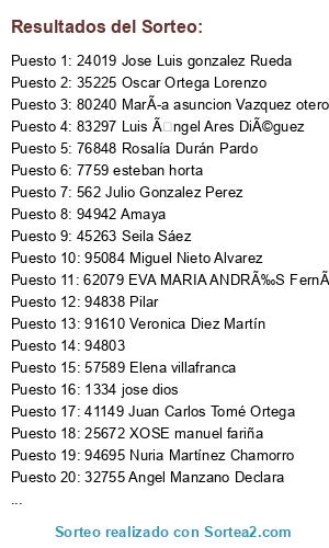Este sorteo ha sido certificado por Sortea2. Sortea2 garantiza que: