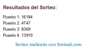 Este sorteo ha sido certificado por Sortea2. Sortea2 garantiza que: