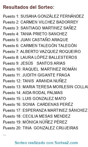 Resultados del sorteo: