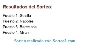 Lista de participantes: Napoles, Barcelona, Sevilla, Milan.