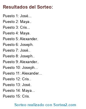 Resultados del sorteo: