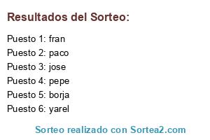 Lista de participantes: jose, fran, paco, pepe, borja, yarel.