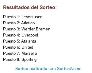 Lista de participantes: Atletico, Atalanta, Leverkusen, Werder Bremen, Marsella, United, Sporting, Liverpool.