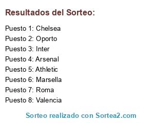 Lista de participantes: Valencia, Athletic, Arsenal, Roma, Inter, Marsella, Chelsea, Oporto.