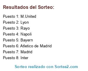 Lista de participantes: Rayo, Madrid, Napoli, Inter, Lyon, Bayern, Atletico de Madrid, M.United.