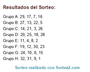 Resultados del sorteo: