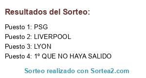Lista de participantes: 1º QUE NO HAYA SALIDO, LIVERPOOL, LYON, PSG.